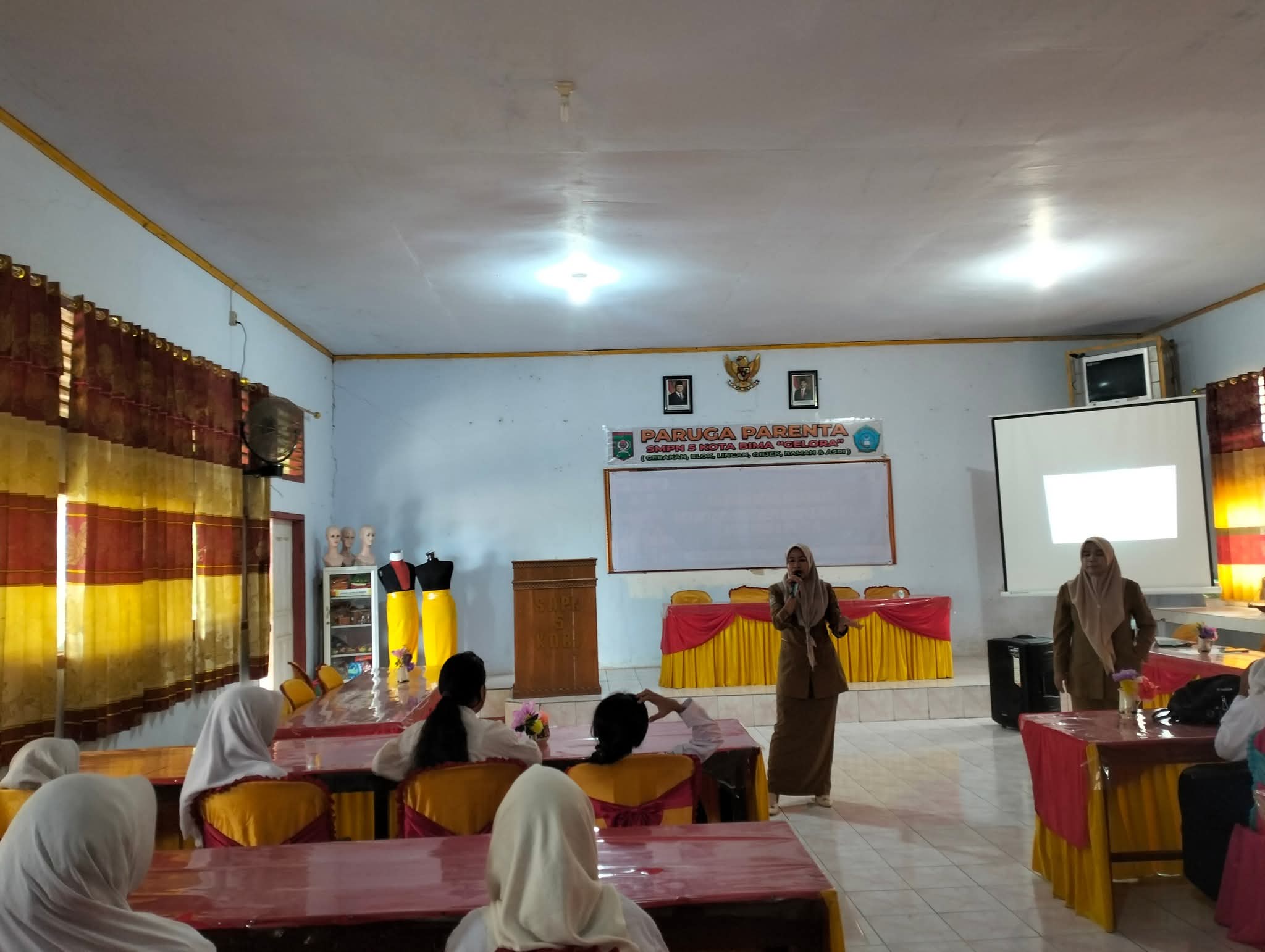 Kegiatan ini dipandu langsung oleh Guru BK, Ibu Yanis, dan dilaksanakan di Aula Paruga Parenta Spenlim. Suasana aula tampak kondusif, dengan meja dan kursi yang tertata rapi, serta layar proyektor yang digunakan sebagai media pendukung, Selasa (14/10).